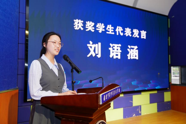 获奖学生代表刘语涵分享了参赛体会,讲述了其潜心钻研、突破自我的成长历程,发挥了榜样示范作用。随后她与台下同学积极互动,进一步激发了全体学生精进技能的热情。