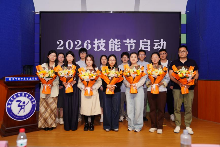 获奖学生代表向指导教师与参赛教师献花致谢,表达了感恩与敬意;教师代表也寄语全体学生勤勉学习、追求卓越。在全场见证下,师生共同宣布2026年校园技能节正式启动。